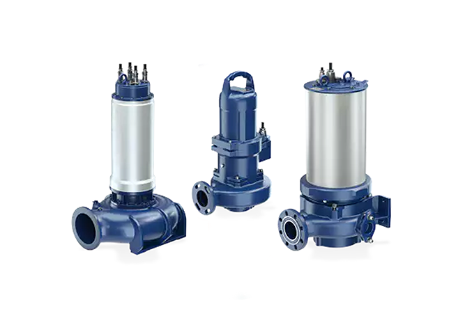 Horizontal or vertical single-stage submersible motor pump in close-coupled design, with various next-generation impeller types, for wet or dry installation, stationary or transportable version, with energy-saving motor and models for use in potentially explosive atmospheres.